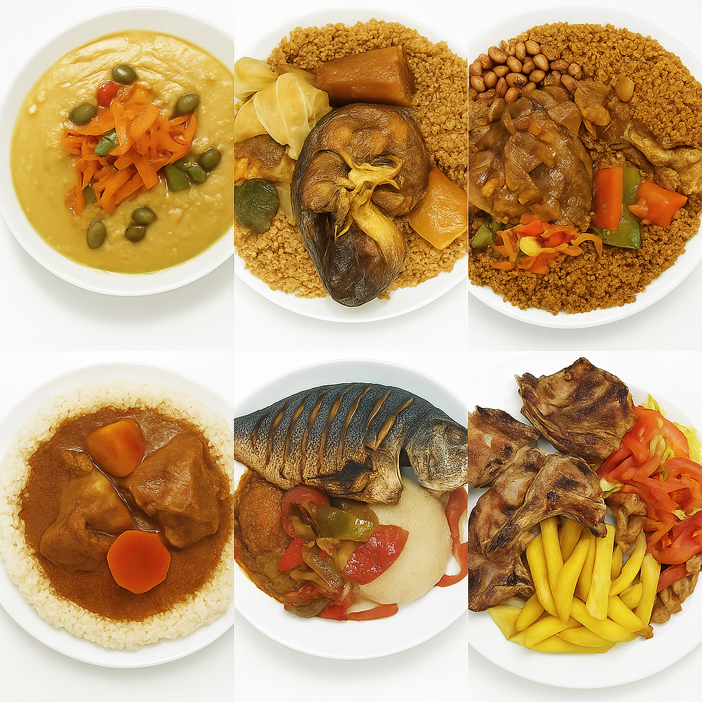 Entre los más emblemáticos están el Thieboudienne (arroz con pescado y verduras), el Yassa (pollo o pescado marinado con cebolla y limón) y el Mafé (carne en salsa de maní).